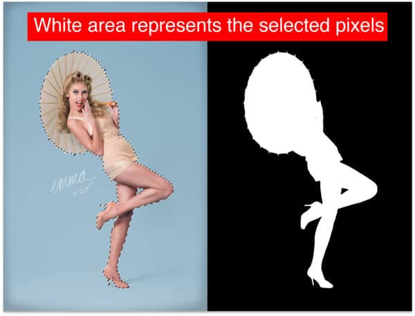 This all relates to a basic understanding of channels, which we won’t dive into here, but Alpha Channels are a great way to depict this. Because it equally follows the same formula except it is related to selections versus visibility. The technology and technique are the same when representing what will be selected, not selected, or partially selected.