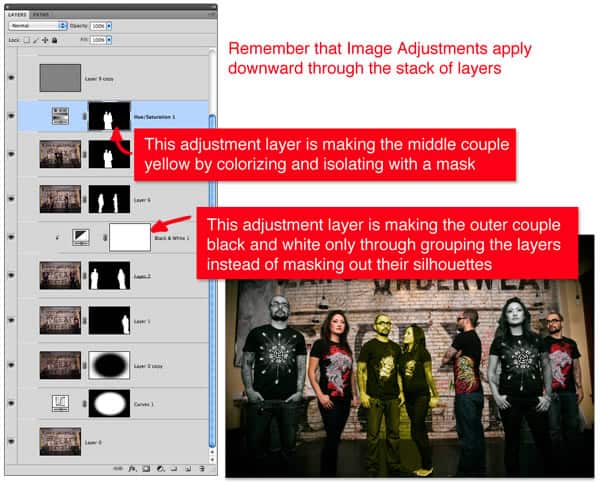 This is destructive in the way that it alters the original data source. But thanks to Adjustment Layers, you can now assign those edits to the whole file or a specific layer using a clipping group. To make things even more finite and granular, the Adjustment Layer has a mask of it’s own, which means you can designate areas that should be affected.
