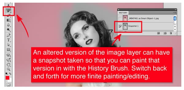 Now this is debatable as an NDE technique, so I’ll leave your personal decision up to you. But, I’ve used it many times and found it really helpful for workflow. Basically you can be working on a layer and at various points in your process take a history snapshot. Because Photoshop has a limited number of undos you can use this technique to rollback to a certain point in your editing. I especially like to use this when I’m trying different filters or painting techniques and then I can paint back in a portion of the look using the History brush. There are lots of other techniques that could just be considered best practices when producing a file that may be utilized again later or shared with another designer. So even though these aren’t NDE, they are well worth learning when you get a chance.