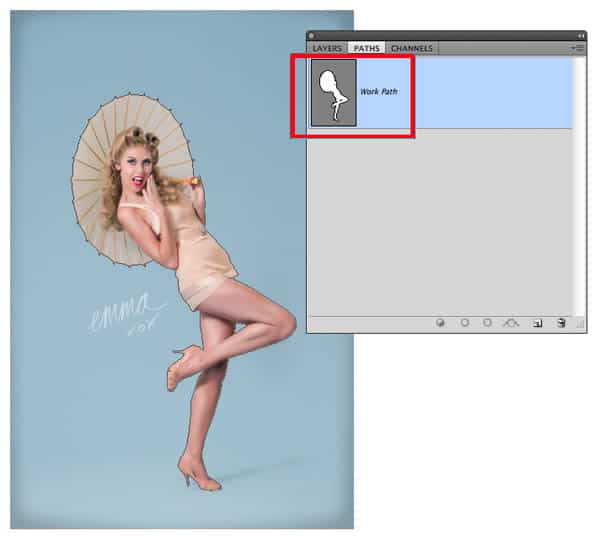 The vector-version of Alpha Channels. But what I like to use them for is to save paths of areas I’ve painted with custom brushes. Because you can stroke a work path with a brush you can consistently use the same path to paint the same coordinates using different scale brushes. It’s great for making these paintbrush tracks.